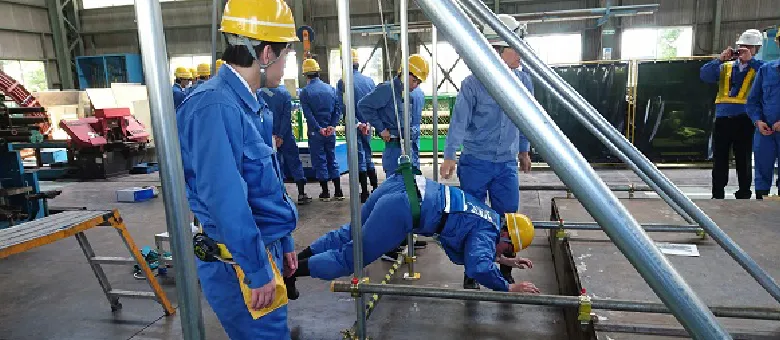 新たに工場で働き始める新入社員に対して、怪我なく安全に働いてもらうために座学だけでなく、シミュレーション、体感研修を通じて理解を深めて、職場で実践できる教育を実施しています。
