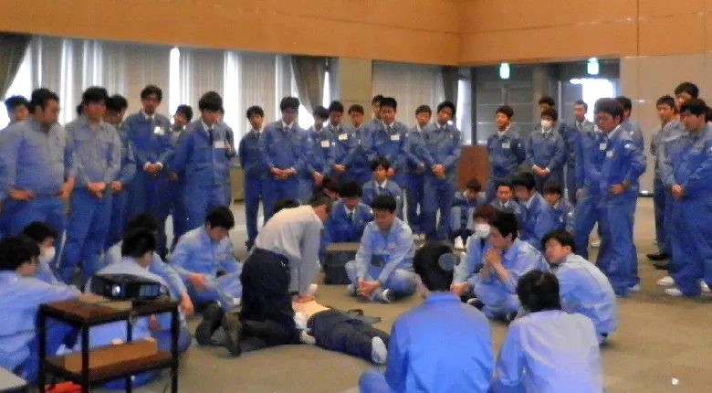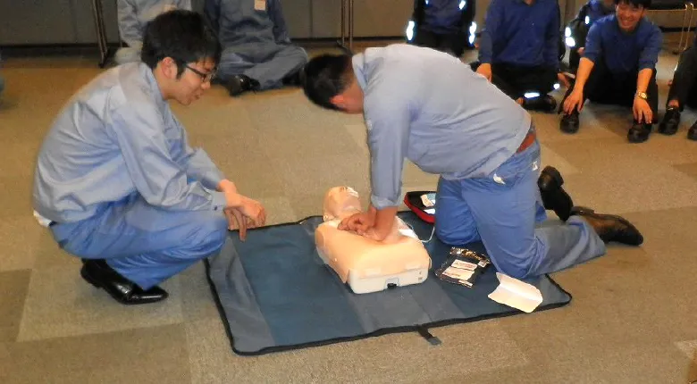 AED使用方法や人工呼吸のやり方を実際に行い覚えることで、いざという時に救命行動できるよう教育を行っています。