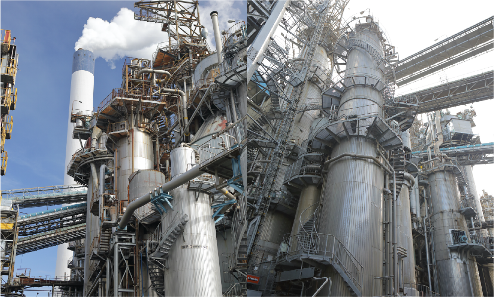 170℃の高温でチップ(原材料)からクラフトパルプ(化学パルプ)の製造を行っている連続蒸解釜