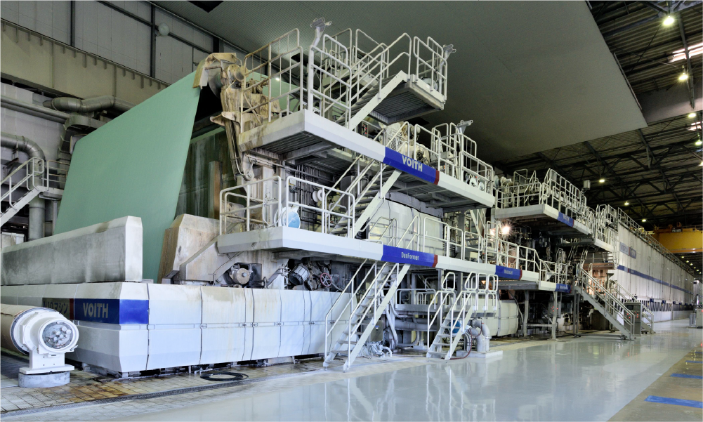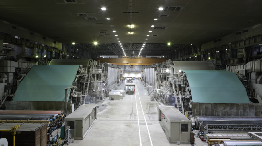 大王製紙の基幹工場である三島工場(愛媛県四国中央市)は、紙・板紙をパルプ から一貫生産しており、その生産量は年間約210万トン、 国内紙・板紙生産量の約9%のシェアを有しています。