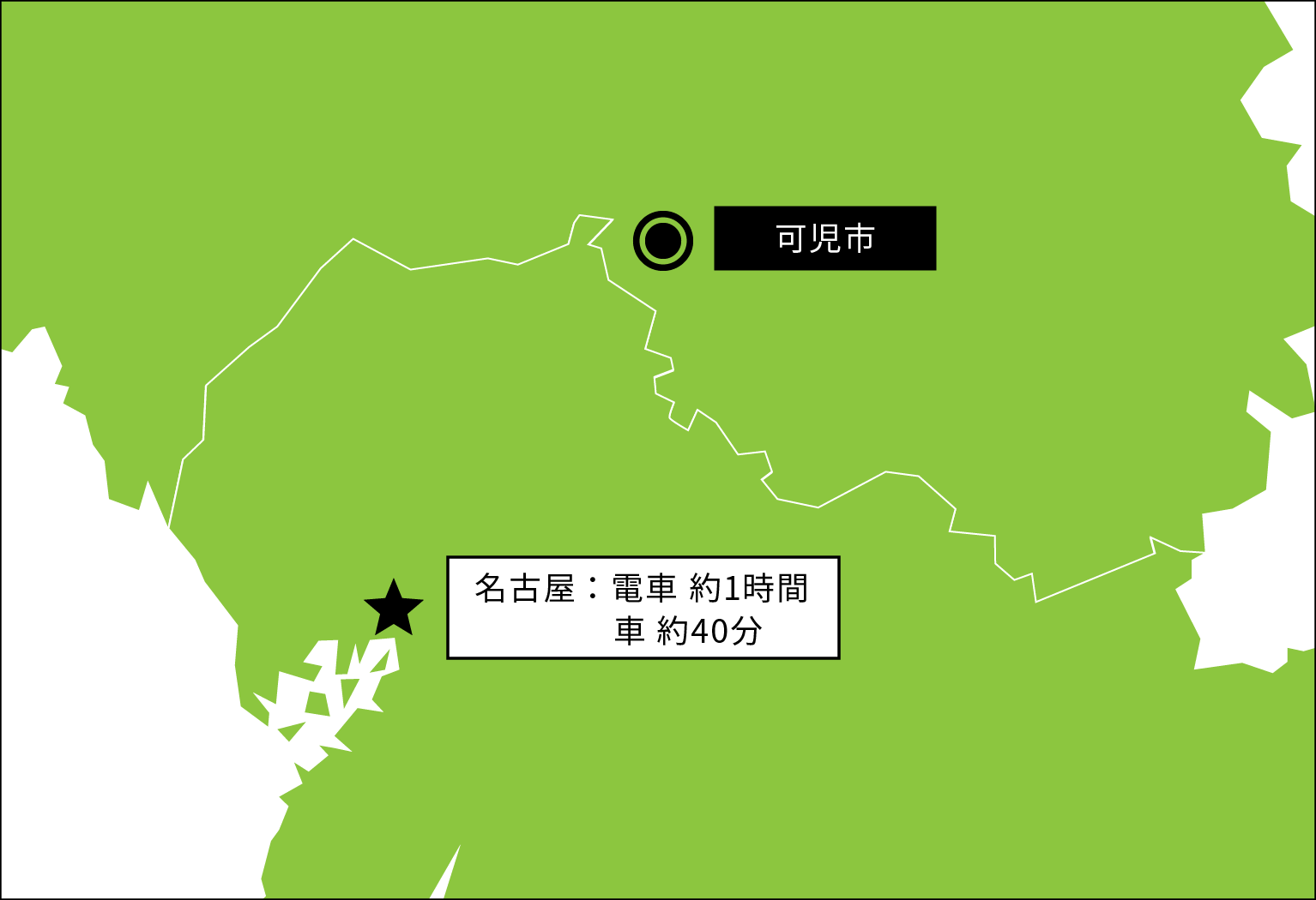 電車1時間・車40分と都市部(名古屋・東京・大阪)への