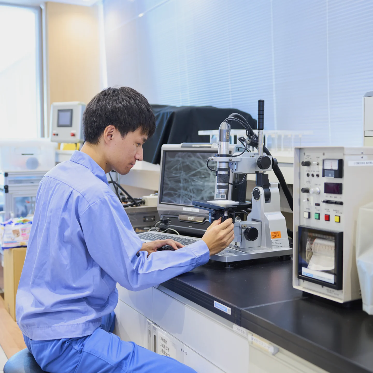 業務は「企画 → 試作 → 評価 → 改善」という流れで進み、チーム全体で議論しながらも、それぞれが専門性を活かして役割を担っています。製品の接着方法を改善するために製造機器メーカーへ出張し、実際にテストを行うこともあれば、海外拠点で現地社員と協力しながら新商品の検証に取り組むこともあります。